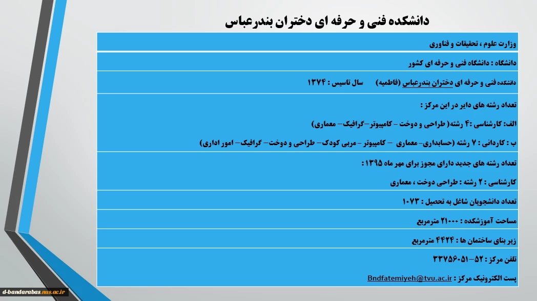 معرفی آموزشکده فنی و حرفه ای دختران بندرعباس